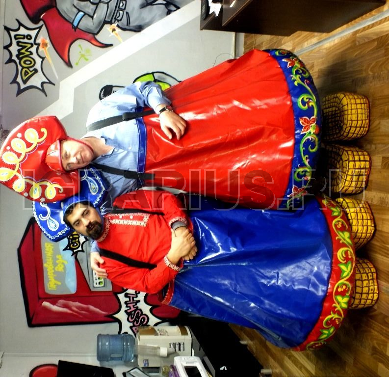 Применение потешному костюму можно найти в рамках масленичных гуляний, можно эффектно поздравить коллег на 8 марта, а можно и попробовать пробежать эстафету на корпоративе или в рамках тимбилдинга. А представляете футбольный матч в таких костюмах?!