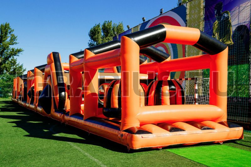 Надувная полоса препятствий, состоящая из отдельных блоков (каждый блок длинной 6 метров) – это «Любимица» наших развлечений на спортивных праздниках. Данная полоса препятствий отлично подходит в качестве финального испытания для «Весёлых стартов» или «Больших гонок».