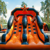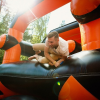 Надувная полоса препятствий в цветах Георгиевской ленты, которую мы предоставляем в аренду, это ещё одна оригинальная идея как провести спортивный праздник в военно-патриотическом стиле или игру Зарница на открытом воздухе или в спортивном зале.