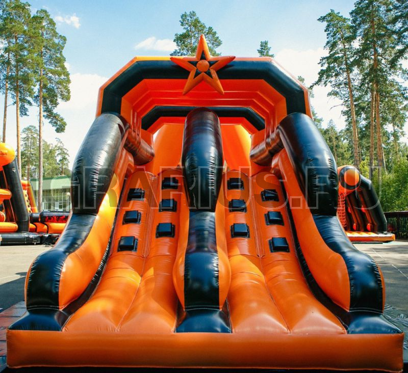 Уникальная полоса препятствий в эксклюзивных цветах гвардейской ленты — подарок не только к празднику 9 Мая, но и по любому поводу. Двадцатипятиметровая чёрно-оранжевая «лента» на вашем мероприятии — согласитесь, это круто! Если вам не хватает стандартной длинны данной полосы препятствий, то мы можем предложить варианты, как усложнить и удлинить данную полосу препятствий вплоть до 400 метров.