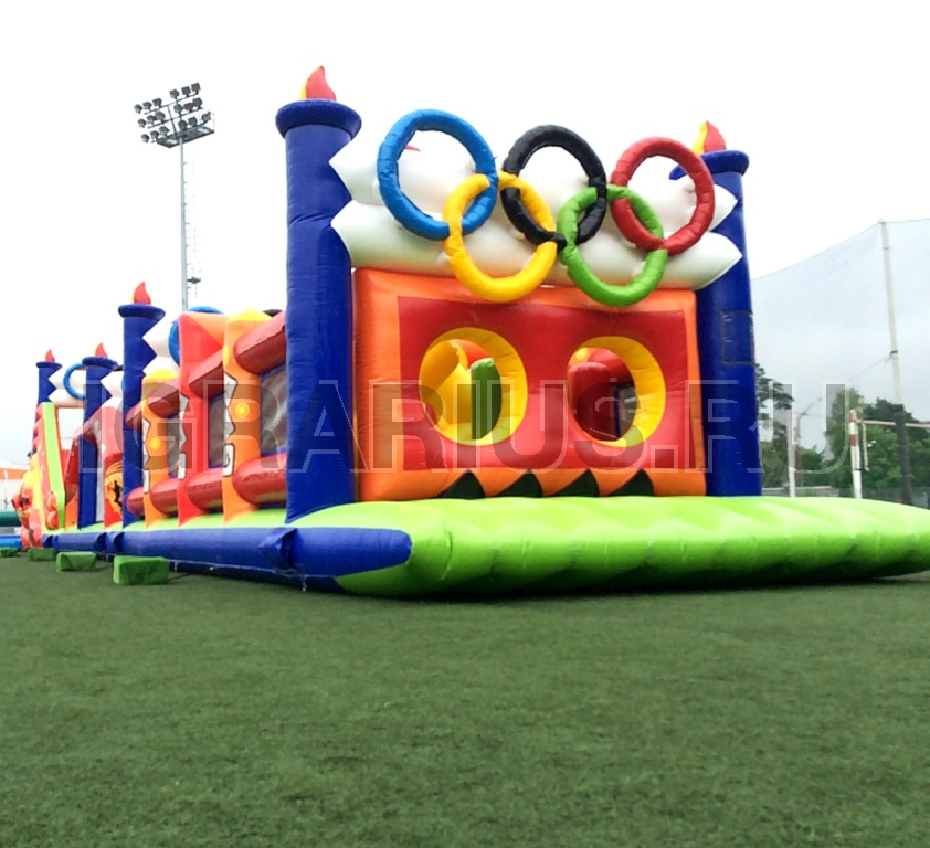 Эта «олимпийская» надувная полоса препятствий будет как нельзя кстати на любой корпоративной спартакиаде, на городском спортивном празднике, на частном торжестве со спортивным уклоном: помимо ярко выраженной олимпийской символики, на аттракционе присутствуют иконки, символизирующие различные виды спорта, а также яркие рисунки из мира спорта.