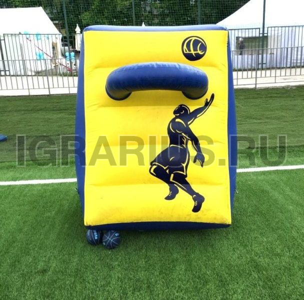 Как следует из названия, надувной тир Баскетбольное кольцо, который мы предлагаем в аренду, напрямую связан с баскетболом, но предназначен, в первую очередь, для детей. Этот аттракцион наиболее оптимален и предназначен не для проведения полноценного спортивного матча, а, скорее, для развлечения. Надувной каркас тира позволяет без последствий врезаться в него в борьбе за мяч … а если участник уже дорос или может допрыгнуть до кольца, то можно и эффектно повисеть на нём, как это делают профессиональные игроки.