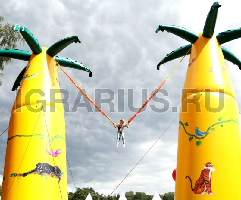 Аттракцион-банджи «Акробат». Как следует из названия, надувной прыжковый батут с трапецией предназначен для выполнения акробатических трюков. Помимо ощущения полёта, он дарит массу позитивных эмоций одним внешним видом … Яркие жёлтые стволы пальм и зелень листьев позволят детям почувствовать себя персонажем книги Киплинга.