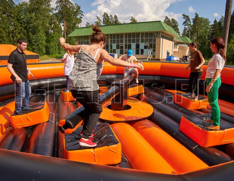 Надувная полоса препятствий в цветах Георгиевской ленты, кот...