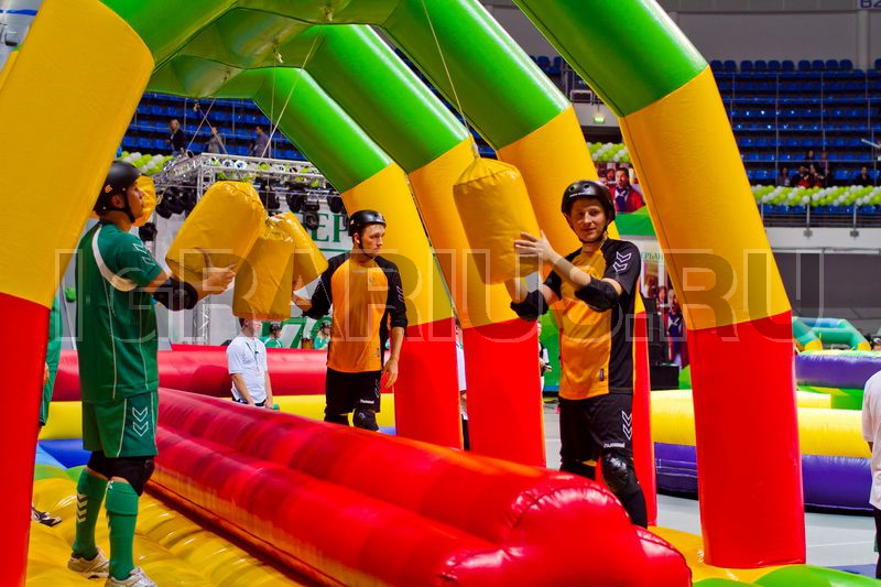 Как и в известной телепередаче, в нашем «корпоративном шоу» команды соревнуются на необычном и для многих неожиданном надувном инвентаре: надувные полосы препятствий, командные лыжи, беличьи колёса, аттракционы «Ударный шар», «Гладиаторы», «Банжи-ран», «Засада», схватки сумоистов в больших поролоновых костюмах, надувной футбол и гигантский волейбол – эти и другие этапы (на ваш выбор мы можем предложить больше 30 подобных испытаний) позволят выявить лучших «большегонщиков», а для тех, кому не посчастливится прикоснуться к кубку за первое место, станут незабываемым и интересным опытом.