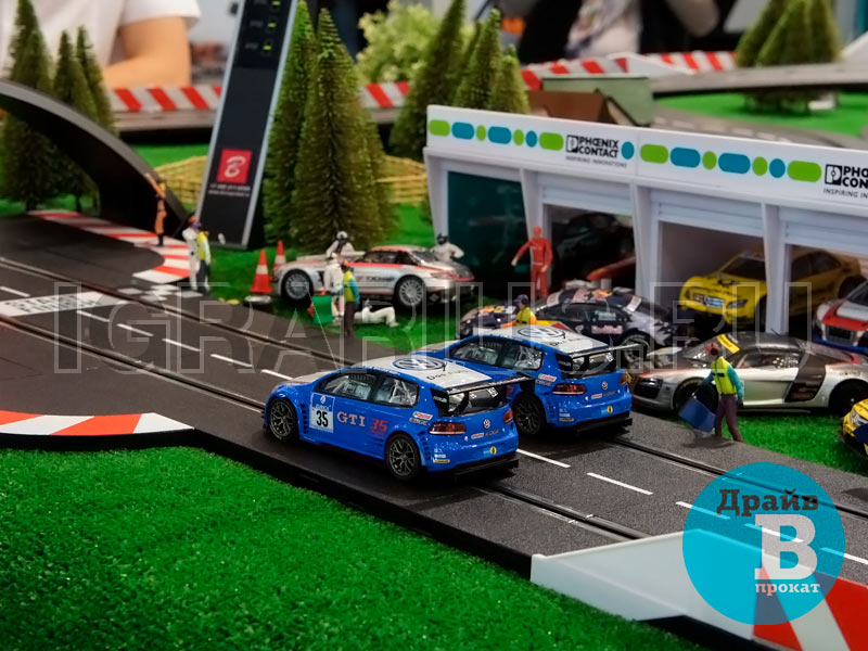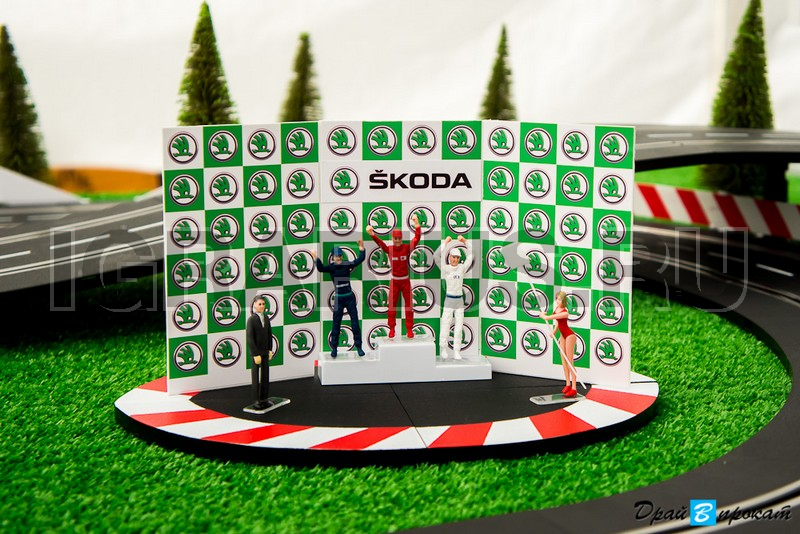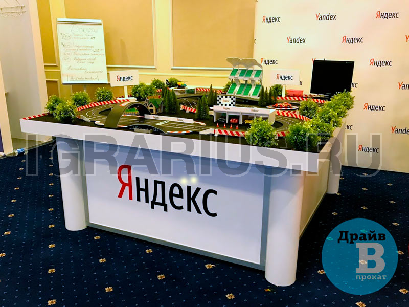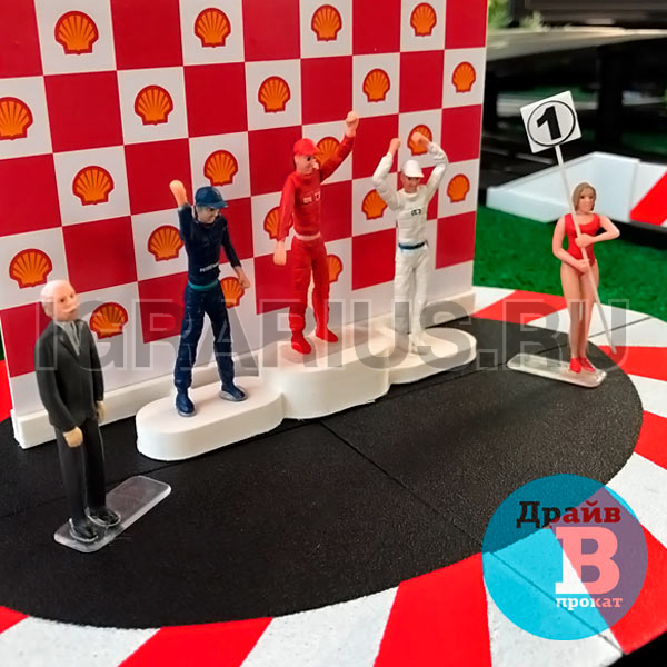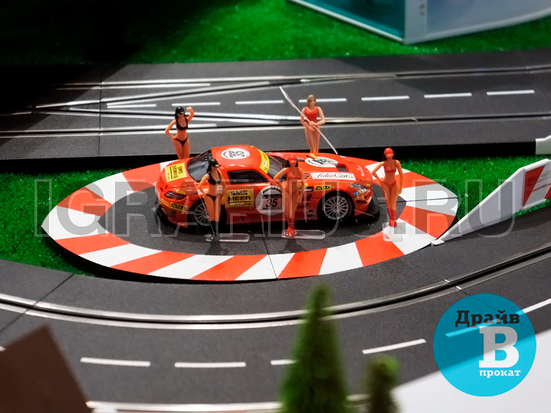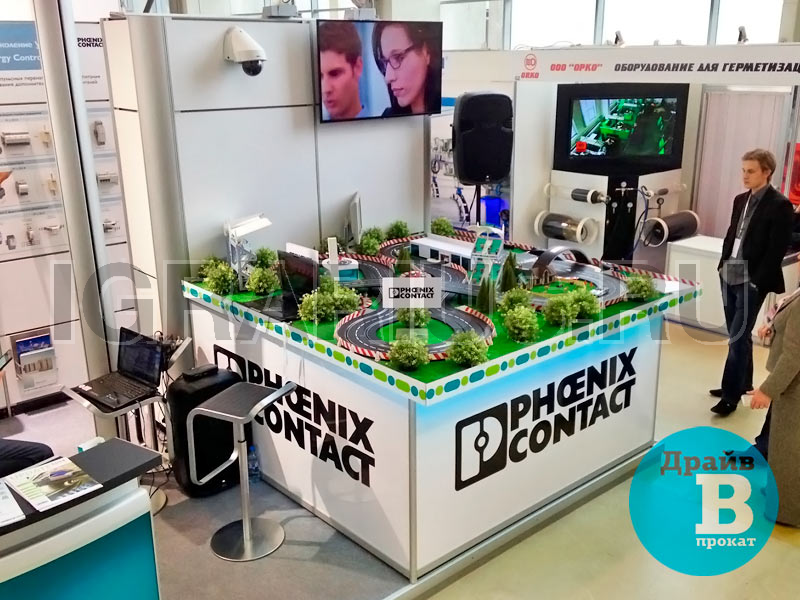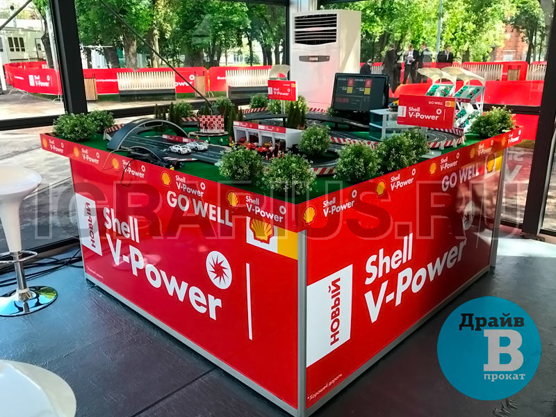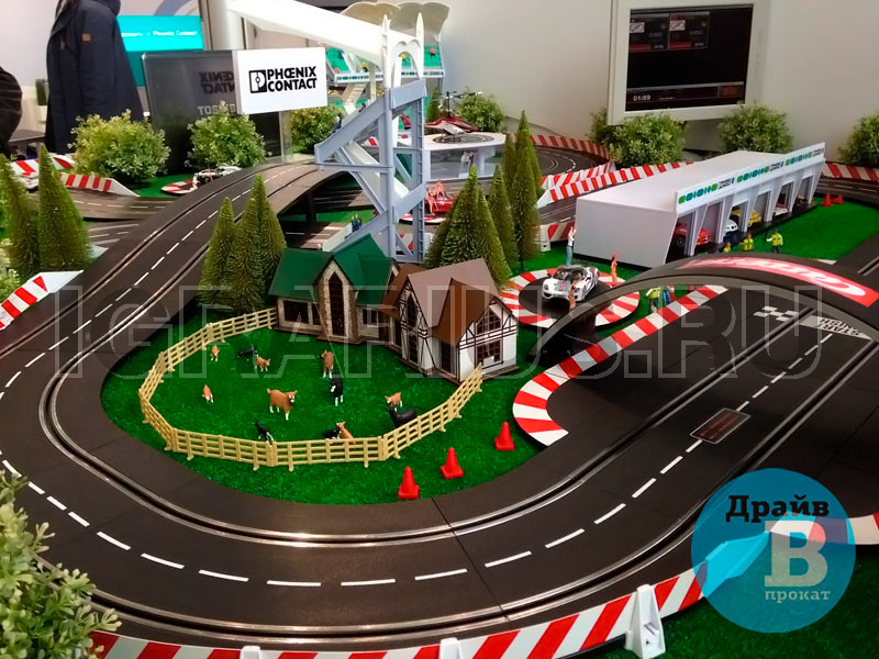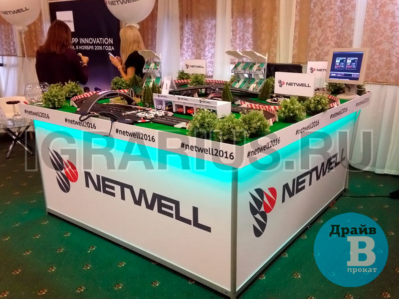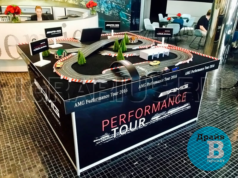 Трасса для кольцевых гонок на брендированном подиуме с LED-подсветкой — отличная идея для проведения клиентского мероприятия! Эффектная кольцевая трасса и захватывающие гонки на слотовых автомоделях украсят стенд Вашей компании на выставке, скрасит паузы во время конференций или презентаций, дополнит любой тест-драйв в автосалоне. Брендированный подиум, трибуны, гаражи и билборды с рекламой на трассе повысят узнаваемость вашего бренда.