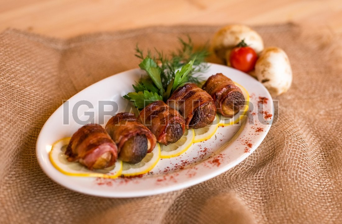 Шампиньоны в беконе — это необычно, ново и интересно. Даже смотреть на процесс изготовления порций — интересно! Поэтому мы с готовностью накормим гостей праздника необычным блюдом, заодно преподав собравшимся небольшой мастер-класс. Блюдо готовится на гриле, на мангале или на специальной посуде, в зависимости от возможностей места. Рекомендуем заказывать фан-кейтеринг «Шампиньоны в беконе» вместе с картофелем фри или как дополнение к выездному пивному бару.