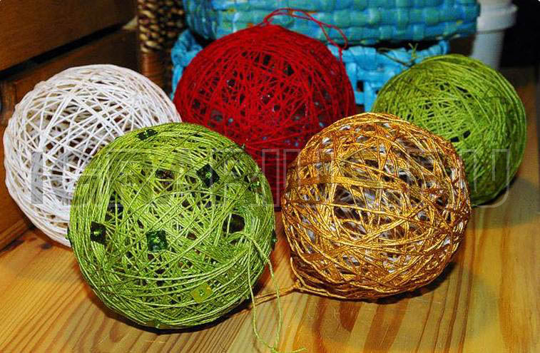 Ёлочные игрушки из цветных ниток