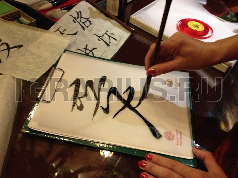 Каллиграфия — это живопись в буквах, это тайны символов и знаков, это отражение мысли, образа, характера. В мастер-классе можно научится написанию одного из выбранного иероглифа. Как правило, мастер предлагает на выбор варианты. Иероглифы несут в себе определенную информацию и являются неким письмом счастья. Возможно также написание иероглифов мастером на выбор гостей в подарок. Гость забирает свиток, повязанный красной лентой. Практикуем японскую, китайскую, славянскую каллиграфию. В славянской каллиграфии используется ручка и перо. Костюмы и антураж соответствующий.