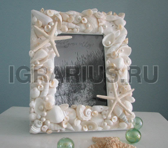 - Фоторамки, камушки, ракушки, морские звезды, прутики, джут, ленты, полубусины, цветочки, зерна кофе, сухоцветами, пуговицами и другие украшения (при использовании других техник — используется соответствующий материал)