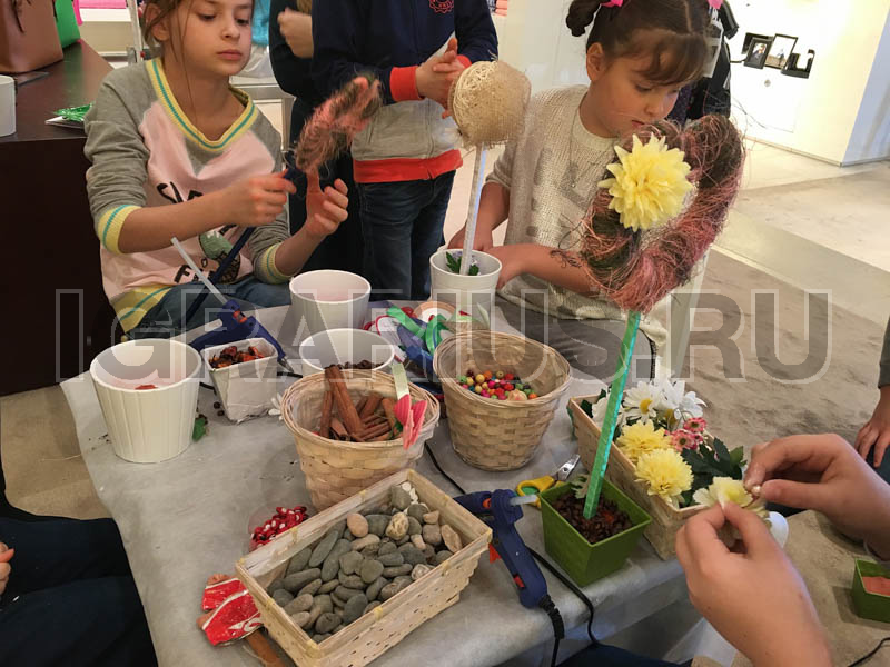 - Горшочек, шар, палочка, а декор может быть от бумажных цветов, до сухоцветов, камней и ракушек