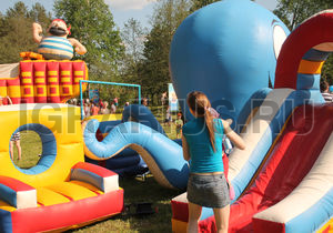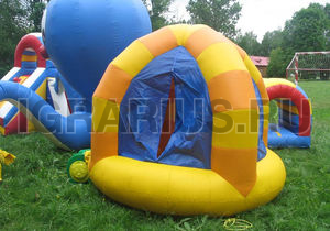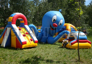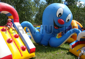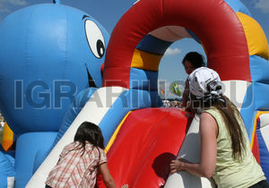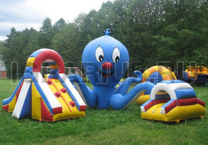 Батут "Осьминог" имеет необычную конструкцию и разбит на несколько игровых зон, которые охраняет огромный осьминог. Здесь ваш малыш может прыгать, ползать, бегать, скатываться с горки в компании морского великана с веселой мордашкой. Хранителя морей можно потрогать за его мягкие щупальца и сделать фото на память. Батут "Осьминог" хорошо подойдет для любого праздника, и будет ярким и интересным дополнением детского торжества.