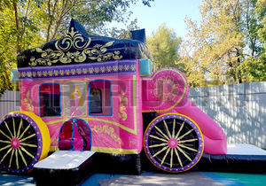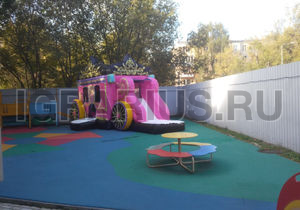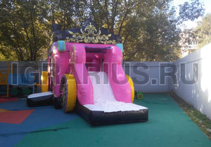Ваш малыш всегда мечтал прокатиться на настоящей карете? Приглашаем вас попрыгать в красивой надувной карете вместе с прекрасной принцессой. В надувной карете можно прыгать до потолка, выглядывать в окошки и махать окружающим, воображая себя принцессой или принцем, а после весело скатиться с горки. Необычная "поездка" на батуте "Карета" запомниться вашему ребенку надолго.