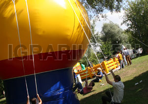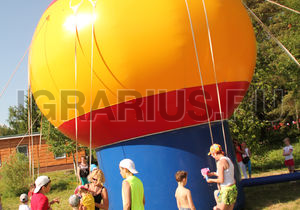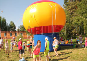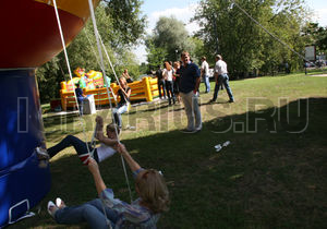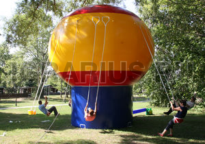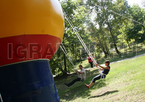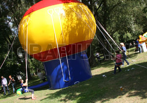 Всем любителям качелей, предлагаем новый вид такого аттракциона, как надувные качели. Конструкция выполнена в виде огромного шара, к которому прикреплены сидения, на которых можно покачаться отталкиваясь от батута ногами. Таким образом на батуте "Качели" можно не только покачаться, но и накачать ноги, а значит совместить приятное с полезным на любом празднике.