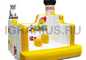На такой печи точно никто не захочет лежать, как Емеля. Батут выполнен в виде русской печки, на которой прилег герой известной сказки, а рядом сидит серый кот, до которого так и хочется допрыгнуть, что бы погладить. Прыгайте, ползайте, отдыхайте на надувных пеньках, получайте хорошее настроение на батуте "Русская печка".