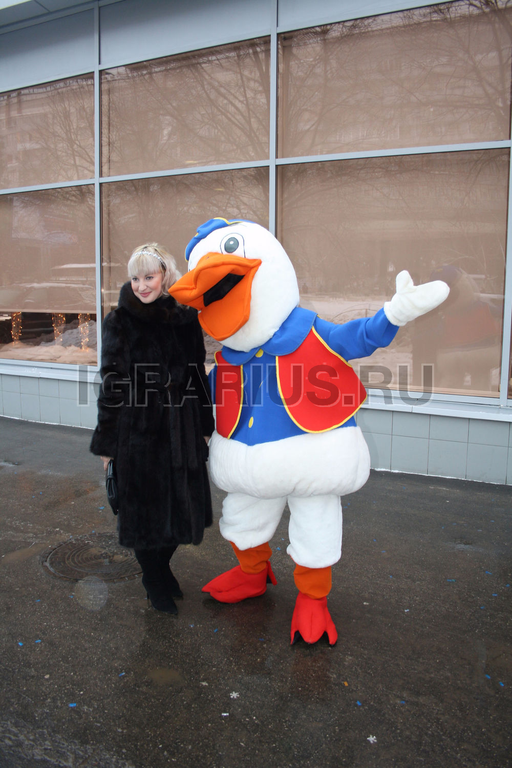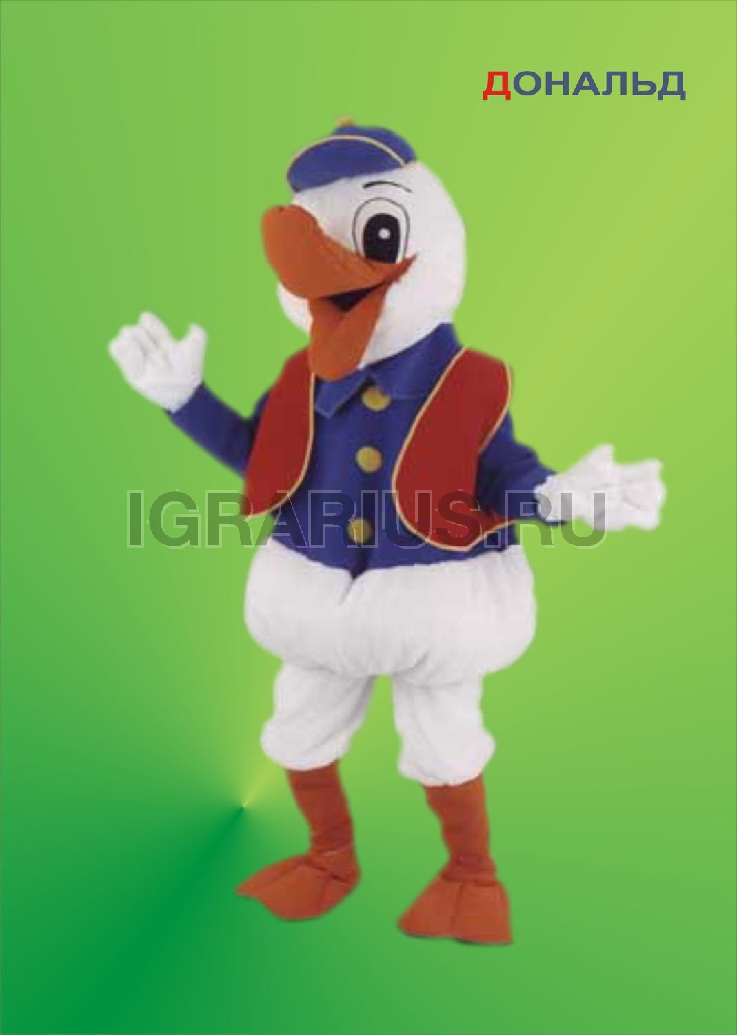 Дональд Дак - популярный селезень из мультфильмов про Микки Мауса и его друзей - настоящая звезда Голливуда! В 2005 году на Алее Славы Голливуда была двже заложена именная звезда Дональда Дака. А еще Дональд Дак — единственный персонаж мультфильмов, который стал символом университета. Пригласите ростовую куклу Дональда Дака на праздник и этот веселый персонаж доставит вашим ребятишкам массу положительных эмоций!