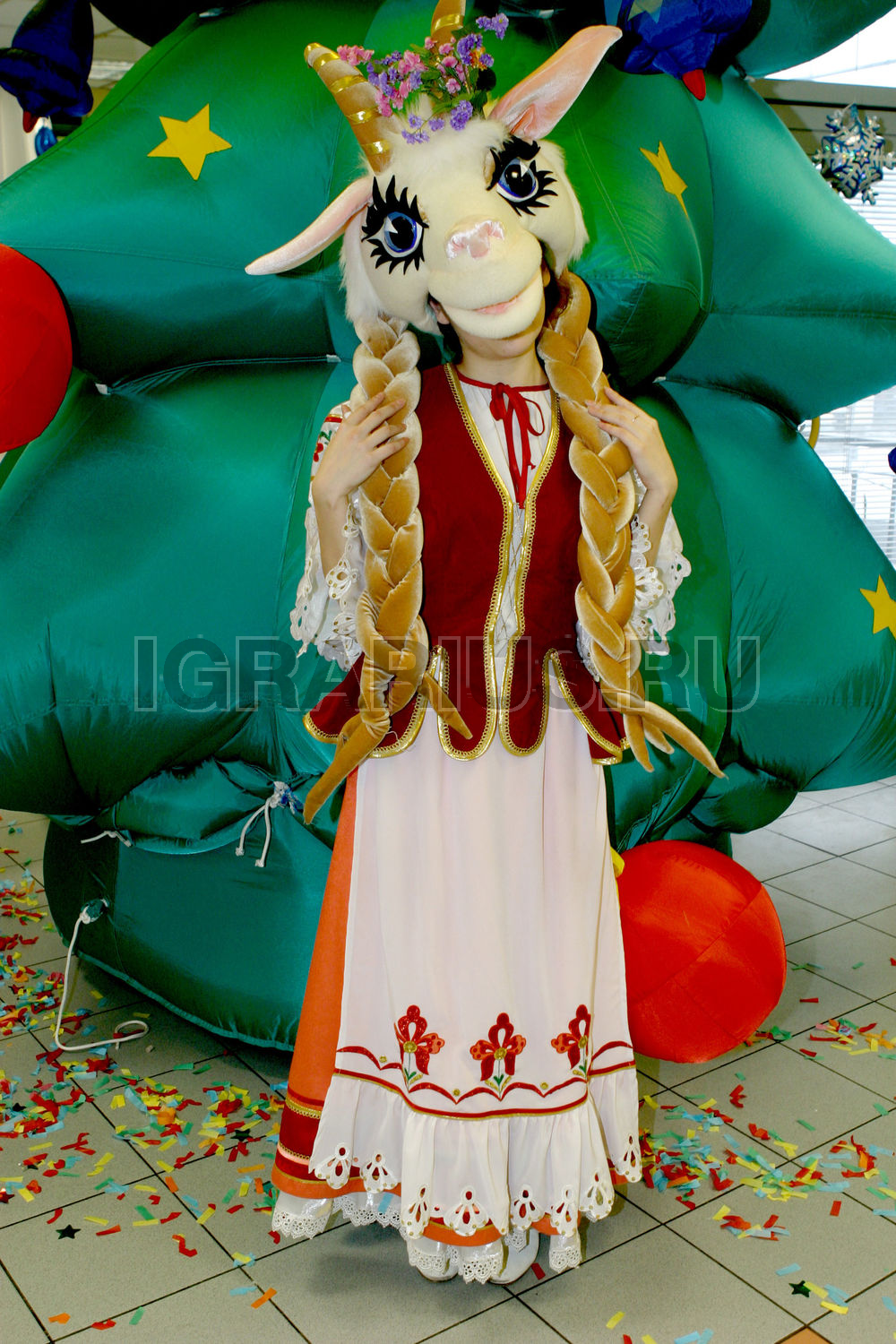 Ростовая кукла Козочка - традиционный персонаж русских сказок и масленичных гуляний. Очаровательная красотка, прямо как из фильма "Мама" по известной сказке о козе и семерых козлятах, станет настоящим украшением вашего праздника! Ростовая кукла Козочка с открытым лицом может проводить с ребятишками игры и конкурсы, водить хороводы и загадывать загадки, устроить домашний театр или рассказать любимую сказку.