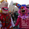 Ростовые куклы Фома да Ерема - два главных скомороха на Масленицу. Сколько про них пословиц да прибауток сложил русский народ - не счесть! Фома-то на козе, а Ерема на свинье... Я ему про Фому, а он мне про Ерему... на Ереме зипун, на Фоме кафтан, На Ереме шапка, на Фоме колпак, Ерема в лаптях, Фома в поршнях. Эта комическая пара, незадачливые братья-близнецы, популярные в русском фольклоре персонажи. Будет просто отлично, если эти два братца появятся и на вашем празднике Широкой Масленицы.