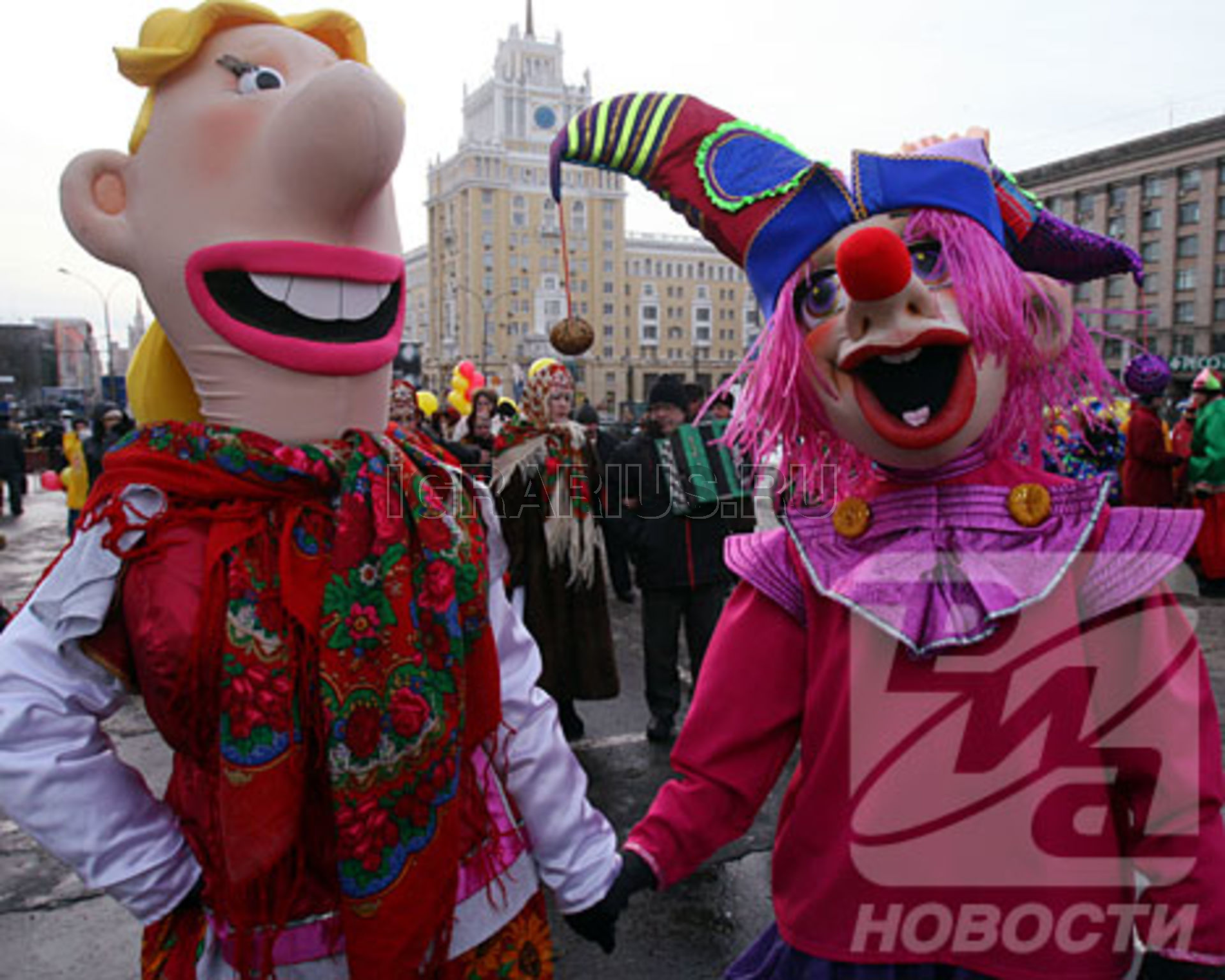 Ростовые куклы Фома да Ерема - два главных скомороха на Масленицу. Сколько про них пословиц да прибауток сложил русский народ - не счесть! Фома-то на козе, а Ерема на свинье... Я ему про Фому, а он мне про Ерему... на Ереме зипун, на Фоме кафтан, На Ереме шапка, на Фоме колпак, Ерема в лаптях, Фома в поршнях. Эта комическая пара, незадачливые братья-близнецы, популярные в русском фольклоре персонажи. Будет просто отлично, если эти два братца появятся и на вашем празднике Широкой Масленицы.
