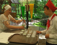 Ретро-буфет со стеклянными колбами под натуральные соки и лимонады прямиком из прошлого! Нет - длинным очередям у заветного буфета! Да - популярным вкусам нашего детства! Вкусные, натуральные соки из ретро-конусов на вашем празднике: томатный с солью, яблочный, виноградный, вишневый и другие. По желанию, стойка может так же использоваться под ретро-сиропы: тархун, лимонад, барбарис, крем-сода, дюшес.