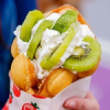 Гонконгские вафли - это невероятно вкусный десерт, представляющий из себя вафельку необычной пузырчатой формы. В каждом из 30 шариков содержится начинка на любой вкус! После выпекания вафля сворачивается в рожок и наполняется воздушными сливками со свежими фруктами или различным мороженым. В завершение вафля поливается разнообразными топпингами.