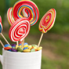 Яркие, разноцветные леденцы на палочке могут быть как отличным угощением, которое обожают все дети, так и прекрасным украшением для детского кэнди-бара. Оригинальной формы, любой расцветки, леденец может стать пригласительным билетом на праздник, сладким подарком для каждого ребенка или декоративным элементом сладкого стола. Кстати, вы можете заказать даже традиционные сахарные петушки - леденцовый вкус советского детства.