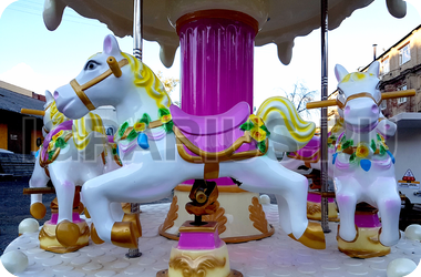 День рождения маленькой принцессы или тематическую вечеринку в стиле фей отлично впишется карусель “Золушка”! Одновременно кататься на ней могут сразу несколько юных волшебниц, поэтому малышам не придётся долго ждать своей очереди, чтобы занять место. Карусель “Золушка” выполнена в самых нежныых красках и придаст Вашему празднику лёгкое, воздушное и романтическое настроение