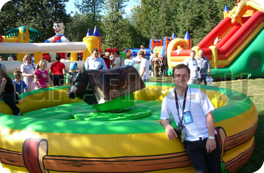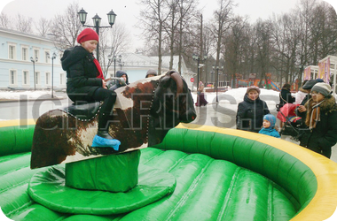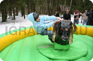 Посмотрите, как он сверкает глазом и упрямо поводит рогами в ожидании смельчака, который решится оседлать его! Он - это родео Бык, с помощью которого Вы сможете проверить свою стойкость, силу и талант укротителя! Попробуйте удержаться на его спине как можно дольше, даже можете устроить соревнования с друзьями! Атмосфера Дикого Запада настраивает на поиски приключений, поэтому родео Бык будет очень кстати на любом празднике или спортивном мероприятии!