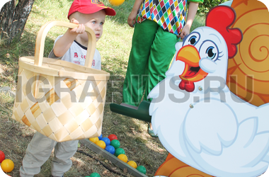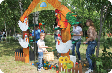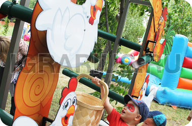 Игра Яйцелов вернёт Вас в яркие 80-е годы и познакомит малышей с увлечениями Вашей юности! Аттракцион представляет собой нарядную избушку, на которой сидят куры, несущие яйца. Ваша задача – ловить яички, вооружившись специальной корзиной. Чем больше улов, тем ближе победа! Интерактивная игра Яйцелов научит Ваших малышей быть ещё быстрее, стремительнее и ловчее!