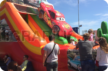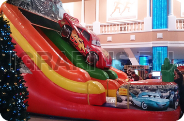 Горка “Тачки” - это целый надувной автодром в миниатюре! Огромная яркая батутная горка с крутым оформлением завлечёт как мальчишек, так и девчонок, соберёт множество весёлых криков и смеха и особенно порадует любителей одноимённого мультфильма! Можно ли набрать на горке “Тачки” скорость, подобную той, какую набирал Молния Маквин, точно неизвестно, но Ваши малыши непременно прокатятся с ветерком!