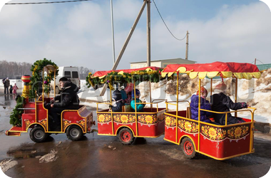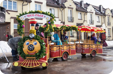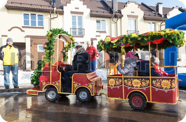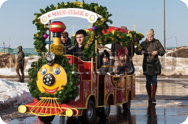 В новогоднюю сказку можно унестись не только на оленях - рождественский паровозик по-настоящему волшебно прокатит Ваших малышей по интереснейшим маршрутам! Одно только его появление на Вашем торжестве создаст добрую магическую атмосферу, а яркий цвет вагончиков и новогодний дизайн заразят хорошим настроением! Рождественский паровозик даже летом может привезти в Ваши края кусочек морозной зимы, а в канун Нового года будет особенно праздничным!