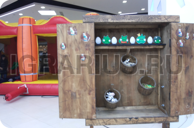 Любые усилия должны быть вознаграждены - вот и аттракцион “Angry birds” теперь готов щедро раздавать призы за ловкость и меткость! Чем больше зелёных свинок будет поражено снарядом, тем выше шанс отправиться домой с новым игрушечным приятелем. В аттракционе “Angry birds” также установлена игра “Лягушки в кадушках” - на случай, если наскучит компания птичек и свинок, можно будет попробовать свою меткость в ней.