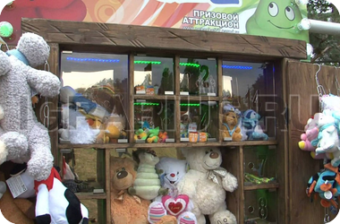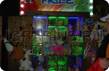 В деревянном домике с ярко подсвеченными окошечками живут игрушки - большие и маленькие, милые и серьёзные, пушистые и не очень. Все они хотят быть кому-то подаренными, а это значит, что аттракцион “Prize” не оставит без сюрприза никого. Это своеобразная лотерея: тянешь из мешочка фишку с номером и смотришь по цифрам на окошечках, кто тебе попался - мягкий заяц или же суровый солдатик в камуфляже? Ещё мгновение - и ты обладатель новой игрушки, щедро подаренной аттракционом “Prize”.
