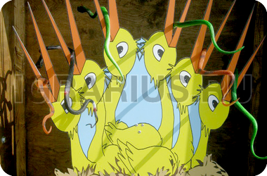 Шесть маленьких глазастых аистят просят, чтобы их скорее накормили1 Аттракцион “Аист” даст вам возможность попробовать себя в роли работника зоопарка - накормить птенцов резиновыми змейками. Каждое попадание змейки в клюв птенца делает Вас на шаг ближе к получению приза. Аттракцион “Аист” даст Вам возможность проверить глазомер и меткость, а также шанс стать “мамой” для чудесных птенцов, пускай и деревянных, но от этого не менее милых.