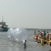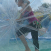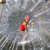 Аквазорб напоминает огромный мыльный пузырь - позитивный, яркий и блестящий. Только в отличие от мыльного пузыря летает он не по воздуху, а по воде, а лопнуть его могут заставить разве что потусторонние силы! Аквазорб работает так: человек забирается в него, молния на поверхност шара застёгивается, он опускается на поверхность воды и... Начинаются задорные прогулки по воде. Вероятность промокнуть равна нулю, зато вероятность получить заряд положительных эмоций - стопроцентная.