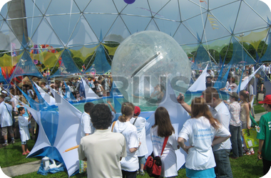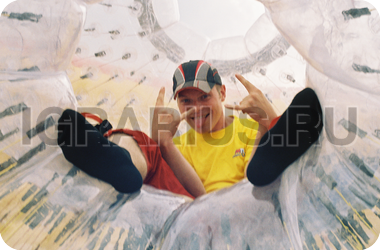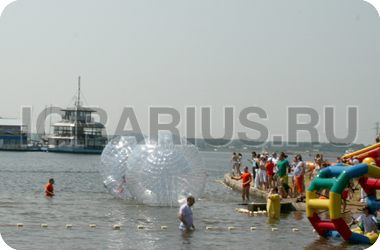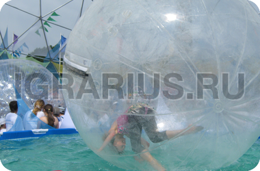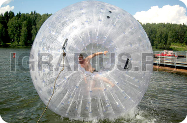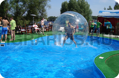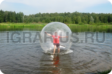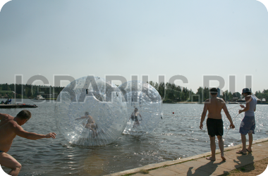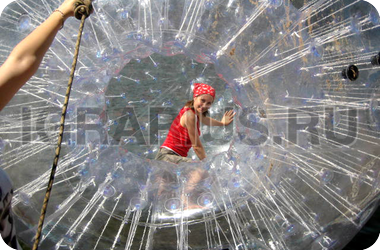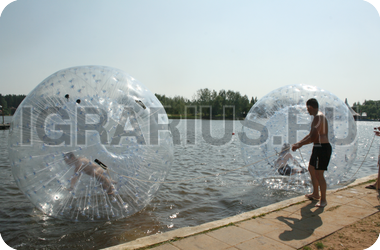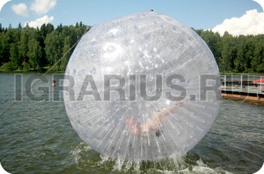 Аквазорб напоминает огромный мыльный пузырь - позитивный, яркий и блестящий. Только в отличие от мыльного пузыря летает он не по воздуху, а по воде, а лопнуть его могут заставить разве что потусторонние силы! Аквазорб работает так: человек забирается в него, молния на поверхност шара застёгивается, он опускается на поверхность воды и... Начинаются задорные прогулки по воде. Вероятность промокнуть равна нулю, зато вероятность получить заряд положительных эмоций - стопроцентная.