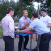 Стол для армреслинга станет хорошим дополнением на спортивном мероприятии - там всегда найдутся любители показать богатырскую силушку! Особенно, если рядом будет много болельщиков и болельщиц. Армреслинг даст возможность гостям Вашего мероприятия почувствовать дух тех времён, когда рыцари сходились на турнире и сражались за свою честь и сердце прекрасной дамы. Современные мужчины не носят шлем и латы, зато богатырская сила никуда не делась - аттракцион “Армреслинг” даст возможность в этом убедиться