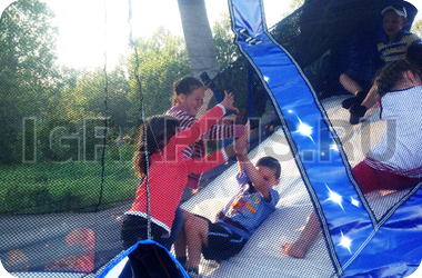Оказаться в стране любимых сказок и мультфильмов всегда приятно, особенно, если летишь с ветерком! Яркая горка “Дисней” станет для Ваших малышей проводником в чудесную страну детства, где их ждут любимые герои - Микки Маус, чеширский кот, Дональд Дак и Плуто! Этот аттракцион помимо горки включает в себя ещё и батут, так что Ваши дети не успеют заскучать! Горка “Дисней” сверху укрыта сеткой, которая ещё больше поддерживает сказочную атмосферу.