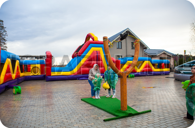 Таких батутов Вы ещё не видели! Надувная полоса препятствий “Конструктор” имеет около 30-и вариантов сборки - установить её на площадке можно так, как пожелается! А это значит, что заскучать Вы не успеете, - “Конструктор” всегд можно собрать по-другому. Детям понравится его необычное устройство, яркие краски и интересные препятствия, так что Вы не прогадаете, заказав его на праздник!