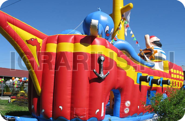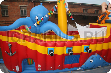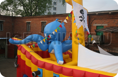 Всегда хотел узнать, каково это - быть отважным морским разбойником? Батут “Пиратский корабль” откроет для тебя мир захватывающих приключений! Якоря, осьминоги, бородатые пираты в тельняшках - всё, как в настоящем Карибском море, и не беда, что надувное! Исследуй надувную палубу корабля, скатывайся с горок, выглядывай в иллюминатор батута “Пиратский корабль” - веселись на полную катушку!