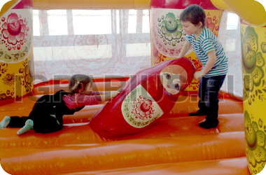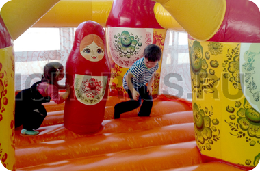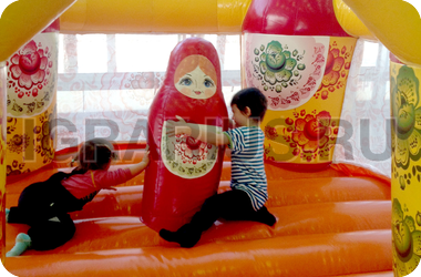 Русский народный стиль, в котором выполнен батут “Матрёшки”, не оставит равнодушными ни малышей, ни их родителей! Яркое и приятное глазу оформление, дань традициям и нарядный орнамент - всё это поможет батуту стать ярким символом Вашего торжества! Масленица, день рождения или день защиты детей - любой праздник засияет ярче с удивительным и красочным батутом “Матрёшки”!