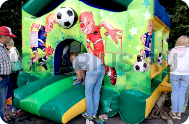 Игровой надувной аттракцион батут Футбол - это отличная зона развлечения для самых юных фанатов популярной спортивной игры. Футбольная тема особенно актуальная в преддверии чемпионата Евро 2018, который будет проходить в нашей стране. Поэтому батут Футбол может быть использован на любом празднике футбольной или околоспортивной тематики, на корпоративных спартакиадах или детских и семейных спортивных праздниках.