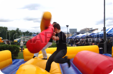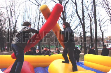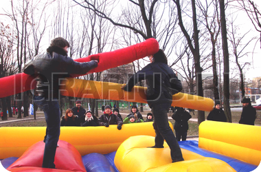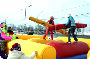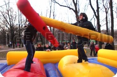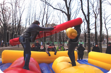Для того, чтобы вспомнить традиционные русские забавы, не нужен повод - зато просто необходим аттракцион Богатырские потехи! На нём юные силачи и силачки смогут помериться удалью и мощью и проверить свою выносливость. Шутка ли - выстоять на широком надувном бревне, когда соперник норовит скинуть тебя с него огромным батутным мечом! Для тех, кто не испугался, Богатырские потехи станут приятным сюрпризом на празднике!