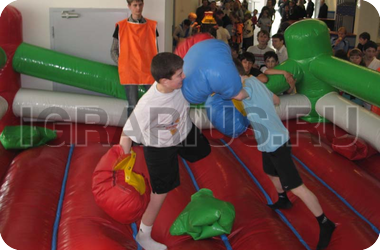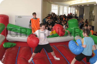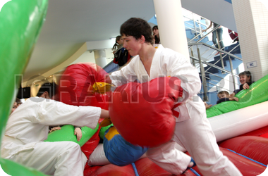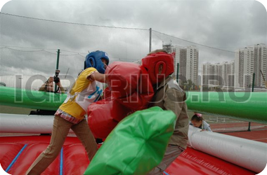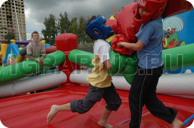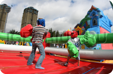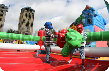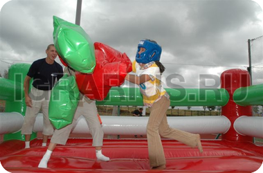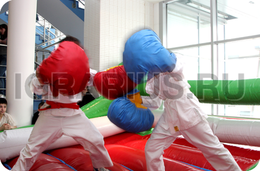 Папа любит наблюдать по телевизору за боксёрскими поединками, а сын то и дело пристраивается рядом с родителем у экрана? Теперь соревнования по боксу можно устроить и среди любителей с аттракционом “Боксёрский ринг”! Огромные мягкие перчатки не позволят получить травму, а надувной батут смягчит падение! С аттракционом “Боксёрский ринг” очень просто собрать свою армию болельщиков и весело провести время!
