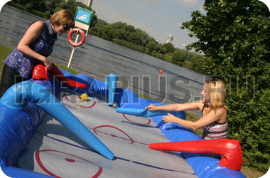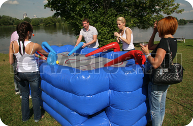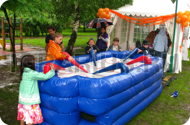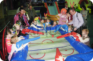 Для тех, кто не знает, какой мир лучше, - сказочный или же реальный, отлично подойдёт аттракцион “Воздушный хоккей”, сочетающий в себе оба этих понятия! Хоккейная площадка представляет собой большую надувную подушку с воротами и батутными трубами. Для того, чтобы забросить шайбу в ворота соперника, нужно правильно управлять воздушными потоками, выходящими из труб. Попробуйте на вкус спортивный азарт с аттракционом “Воздушный хоккей” - он Вам точно понравится!