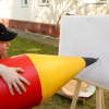 Если Вы вдруг захотите открыть на Вашем празднике мини-изостудию, то гигантский карандаш отлично впишется в её работу! Он превратит рисование в увлекательную игру: шутка ли - удерживать огромную пишущую принадлежность и рисовать с её помощью картинки! А имея под рукой два или больше гигантских карандашей, можно устроить соревнования по скоростному рисованию - уверены, желающих будет много!