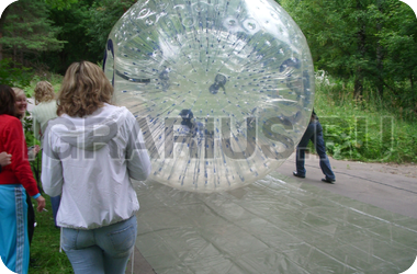 Прозрачный ёлочный шарик, мыльный пузырь или пузырь из жвачки, космическая сфера... Ассоциаций, которые вызывает шар зорб, очень много! Благодаря этому аттракциону Вы сможете почувствовать себя космонавтом в центрифуге, стремительно несясь в огромном шаре по поляне или даже по водной поверхности! Зорб - это голос будущего времени в настоящем, поэтому поспешите его услышать!