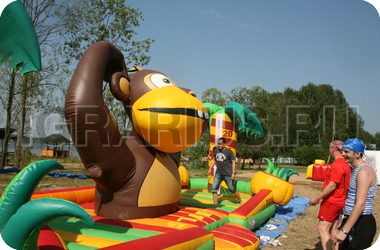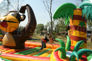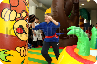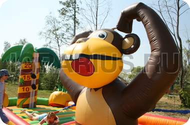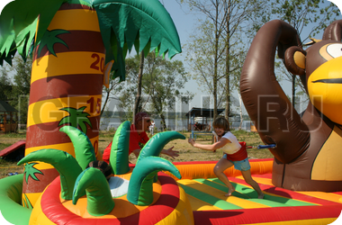 Прошло много времени с тех пор, когда Кинг Конг был злым и страшным зверем - теперь эта обезьяна является хранителем яркого и весёлого батута! На нём так здорово прыгать и резвиться, обнимать надувные пальмы и пытаться достать до кокосов и бананов, висящих на их ветках! А если Ваш малыш соберёт компанию друзей, то батут “Кинг Конг” станет излюбленным местом для детских игр и развлечений!
