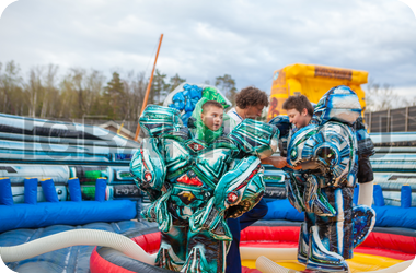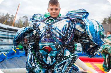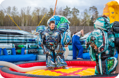 “Вот это да! Ну и придумают же люди!” - Вы вполне можете услышать такие возгласы, если на Вашем празднике будет игра Космическое сумо! Только подумать: огромные роботы азартно дерутся, блестят детали костюмов и уморительно смеются! Волноваться за тех, кто находится в нарядах космических сумоистов, не нужно: игра абсолютно безопасная и до невозможности позитивная!