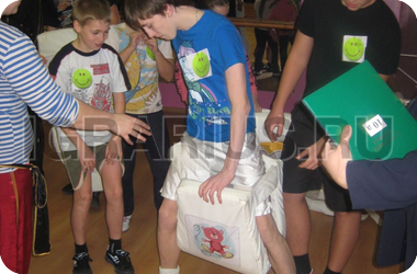 Битвы гигантских пупсов - это что-то новенькое! Специально для них изобретены памперсы для эстафет, которые сделают спортивные игры в два раза веселее и забавнее, а в сочетании с огромными ботинками ещё и сложнее. Одевайте папу в памперс, ставьте его на ринг против директора офиса и смотрите, как здорово и непринуждённо сражаются два больших ребёнка! Памперсы для эстафет расслабят и раззадорят любой, даже самый суровый коллектив и добавят в Ваш праздник нотку беспечности.